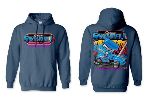 Sammy Swindell Sprint Car #1 graphic on an Indigo Blue Hoodie.